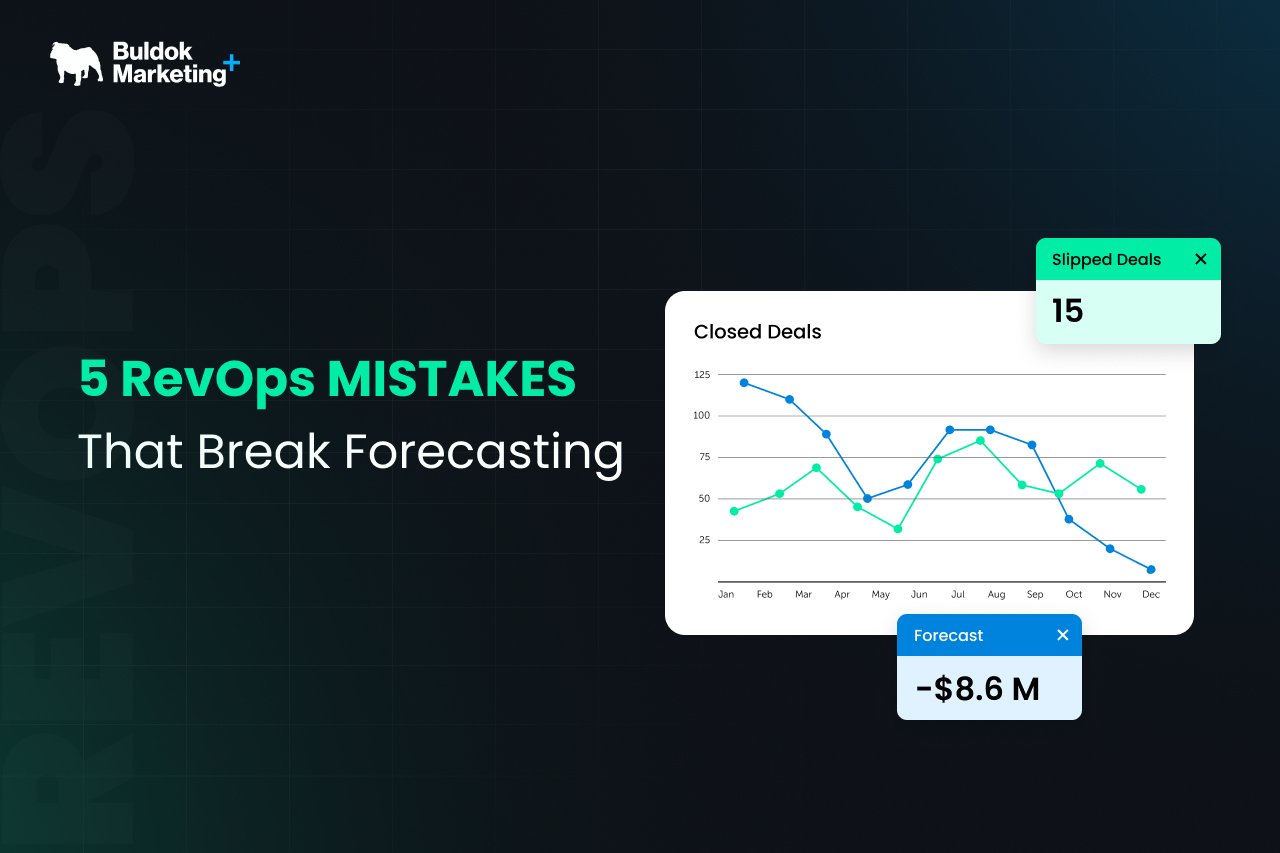 Revenue forecasting sits at the centre of modern revenue operations. It informs hiring decisions, marketing investments, pipeline planning, and executive strategy. When forecasts are accurate, leadership teams can plan with confidence. When forecasts are unreliable, organisations operate with uncertainty. Many companies assume forecasting is a sales problem. In reality, it is a RevOps system problem. Forecast accuracy depends on how marketing, sales, and customer success data flows through the revenue stack. If the underlying systems, definitions, or processes are misaligned, forecasts quickly become unreliable. This blog walks through five specific RevOps mistakes that consistently destroy forecast accuracy, and what to do about each one. If your team is working inside HubSpot, there is a practical fix for each mistake using the tools already at your disposal. At Buldok Marketing, we work with B2B companies every day that are sitting on powerful HubSpot portals that are not producing reliable forecasts. Here is why, and how to fix it. Mistake 1: Using Pipeline Volume as a Proxy for Pipeline Health A full pipeline feels reassuring. It signals that the team is active, leads are coming in, and deals are moving. But volume alone tells you almost nothing about what will actually close. The signals that actually predict close likelihood are things like stage velocity, how long a deal has been sitting in a stage without movement, engagement activity from the prospect, and how often the close date has been pushed back. A deal that was created six months ago and has had its close date moved three times is not the same as a deal created last month with active email threads and a scheduled demo. But in a raw pipeline report, they look identical. The HubSpot Fix HubSpot's deal pipeline reports and built-in forecast tool let you filter by probability, close date, last activity date, and deal age. Most teams never use these filters together. When you combine them, your inflated...